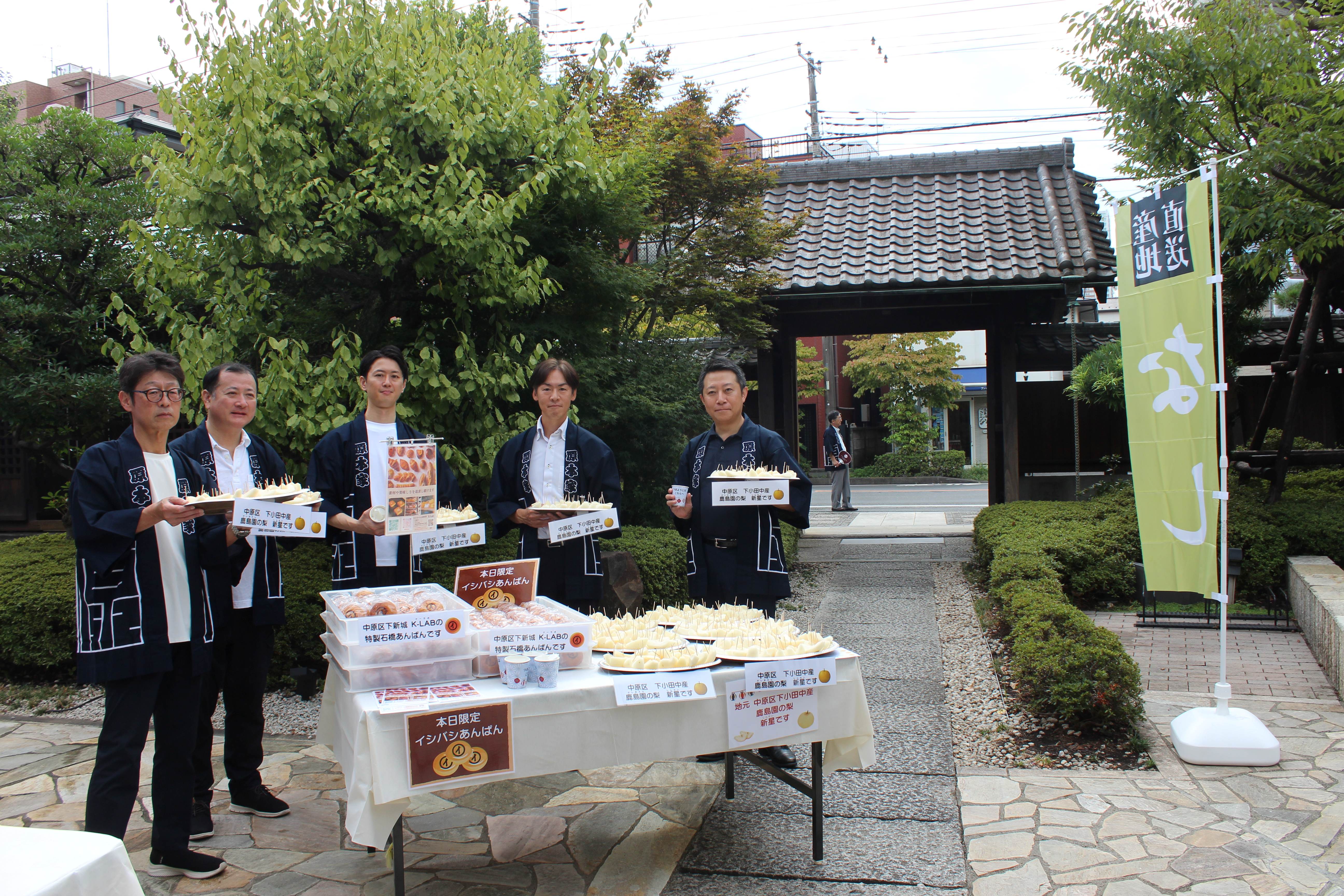 今年も地元 中原区の鹿島園の梨に加え、あんぱんも準備しました。