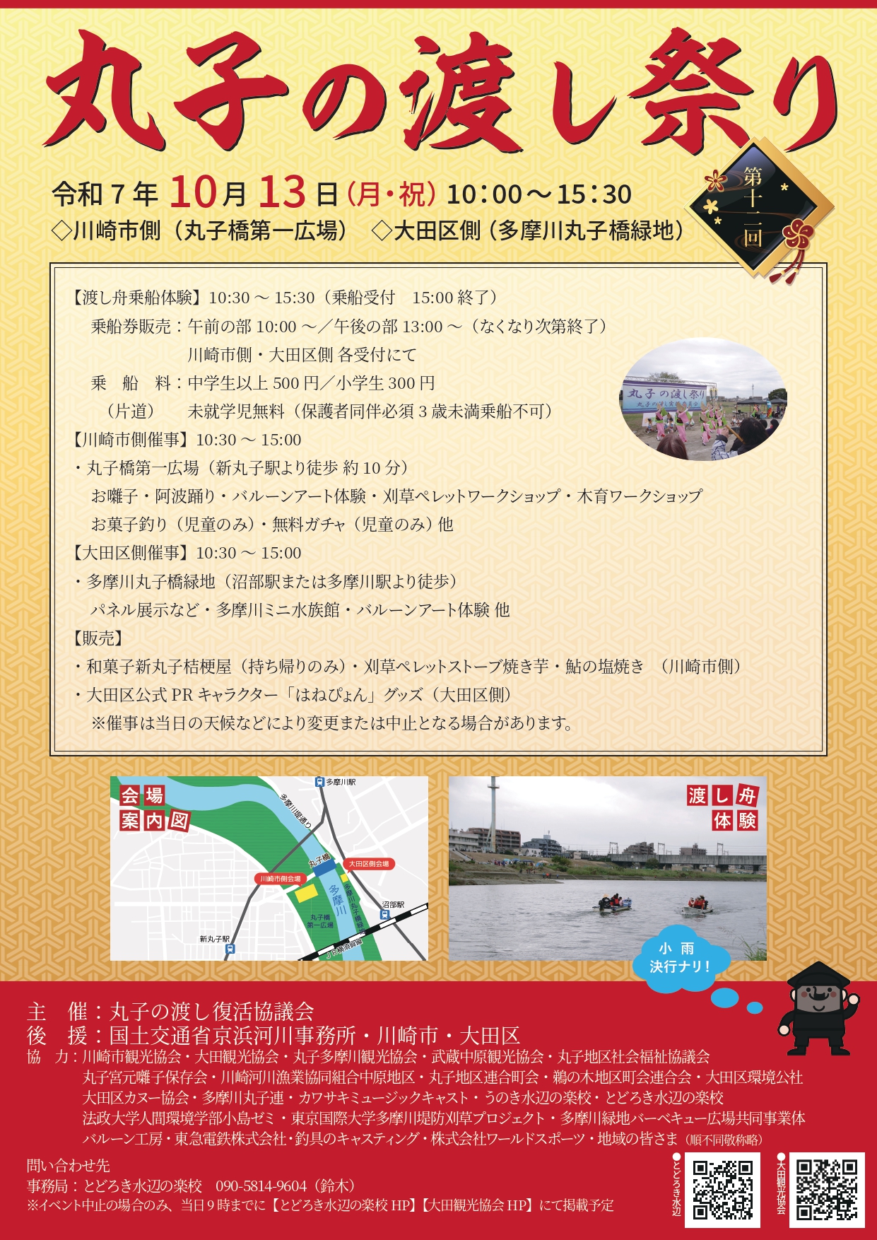 10月13日(月・祝)に、「丸子の渡し祭り」が多摩川(丸子橋付近河川敷周辺)にて今年も開催されます!