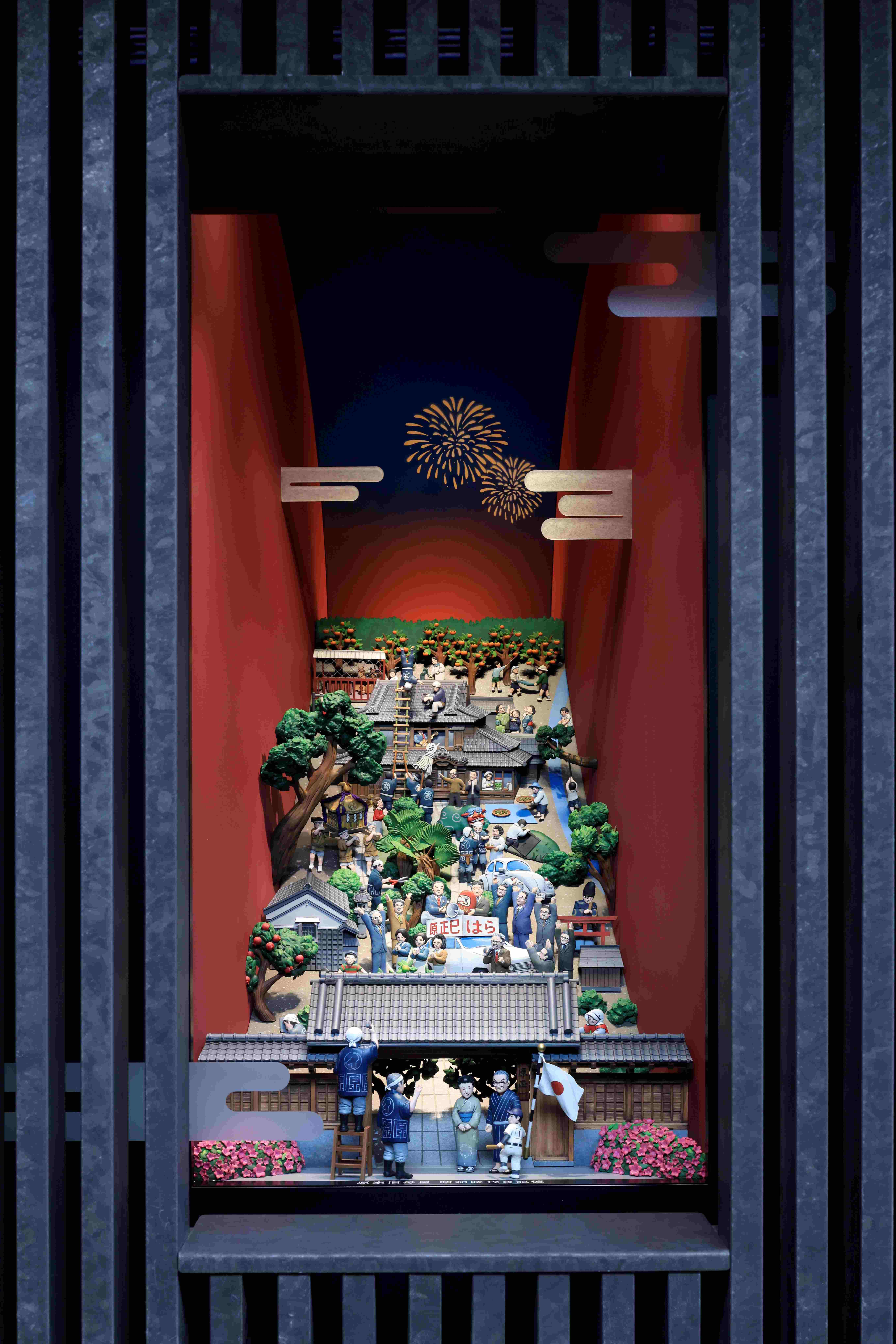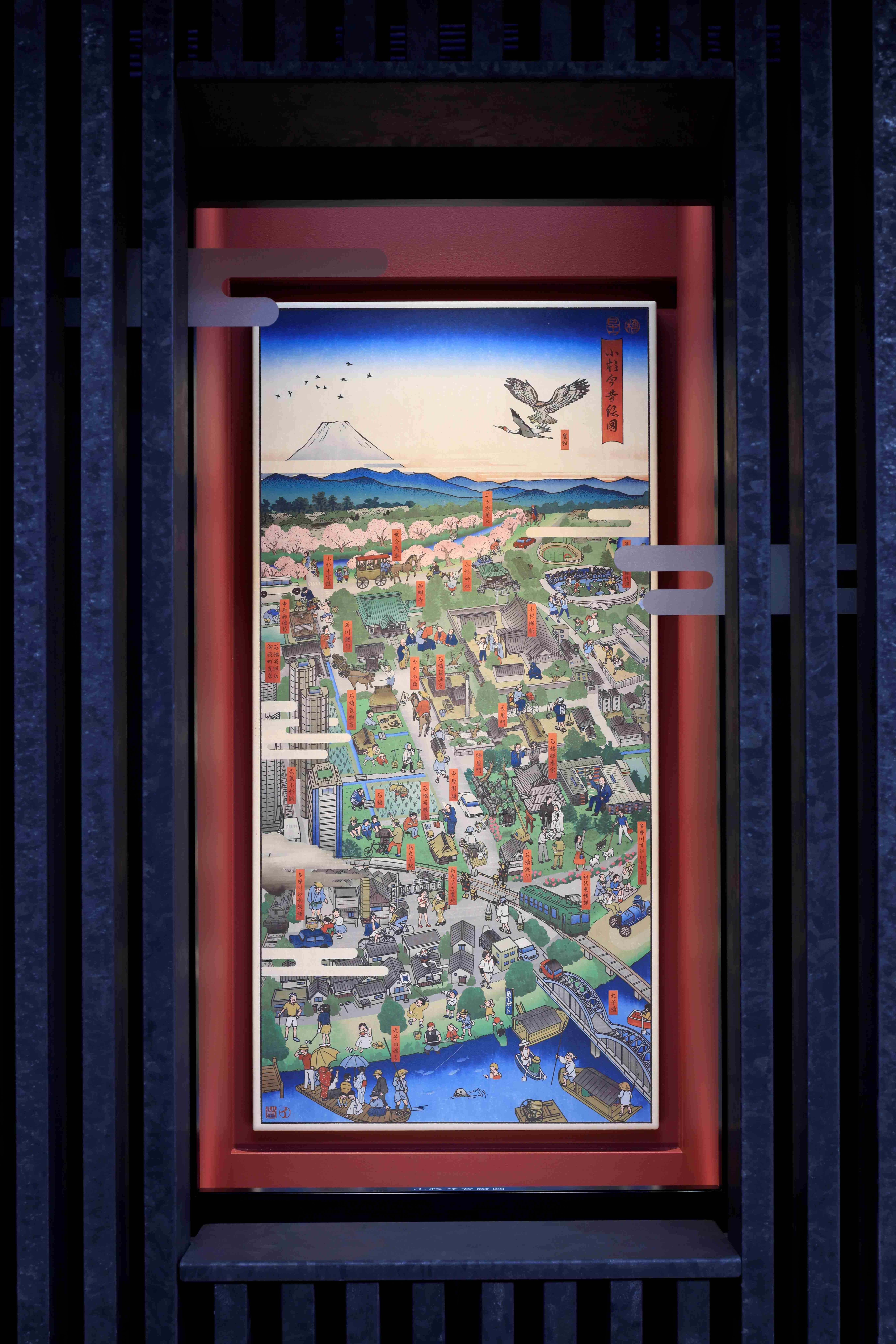 かつてこの土地にありGATE SQUARE小杉陣屋町プロジェクトのモチーフともなっている「原家旧母屋」でのむかしの暮らしや、江戸時代から続く武蔵小杉とこの地の歴史などをテーマに、「株式会社乃村工藝社」協力のもと細部までこだわった魅力が詰まった芸術作品が完成しました。
